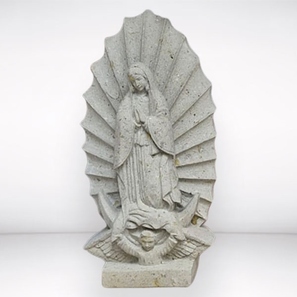 Virgen de Guadalupe Tallada en Cantera, 70 cm de altura. Realizamos trabajos artesanales sobre diseño en cantera, recinto, mármol y granito.